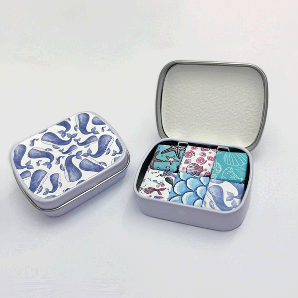 These 6 gorgeous Ocean colours come in a cute little tin that is decorated in an ocean theme. The individual pans each have a magnet to the bottom to help them stay in place in their tin, and each paint is individually wrapped in Ocean Themed paper.